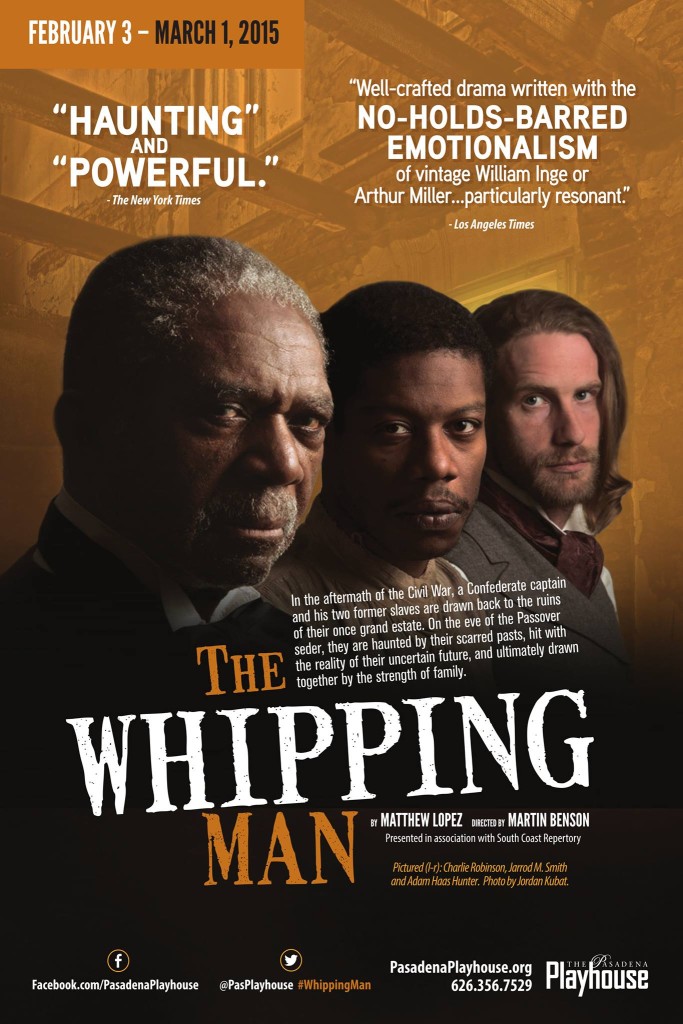 The Whipping Man, which just closed at the Pasadena Playhouse after a month long run, tells the story of a Jewish Confederate captain who staggers back to his family’s crumbling mansion in Richmond, Virginia in April 1865, just days after the Civil War has ended. The badly wounded soldier (Adam Haas Hunter) is reunited with two of his newly emancipated slaves (Charlie Robinson and Jarrod M. Smith), who take drastic measures to save his life. In Act II the men come together to celebrate the Passover Seder, with pilfered wine and hardtack for matzah, but the joyous mood quickly turns tense as uncomfortable truths are revealed.